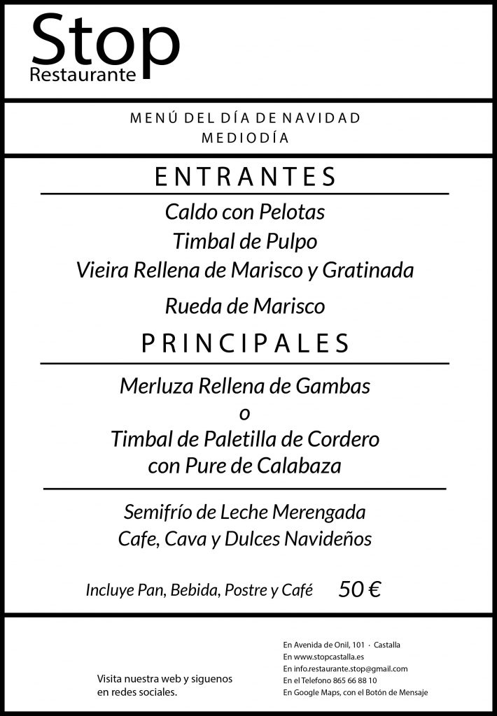 Menú de Navidad 25 de Diciembre al Mediodía